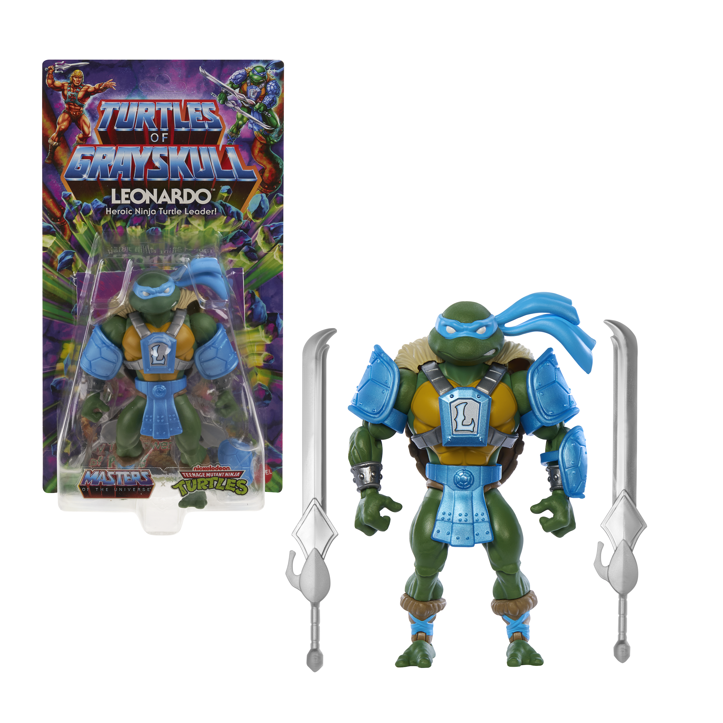 This collection represents an ooze-tastic crossover of the worlds of Masters of the Universe and Teenage Mutant Ninja Turtles. Drawing inspiration from both MOTU and TMNT, fans of either brand can look forward to seeing their favorite heroes and villains in brand new designs. Find out if He-Man and the Teenage Mutant Ninja Turtles’ new alliance will be enough to stop Krang and Shredder’s nefarious plans to build an army of Eternian mutations!