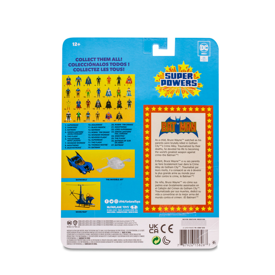 - Is packaged in iconic Super Powers blister card packaging with updated artwork and logos