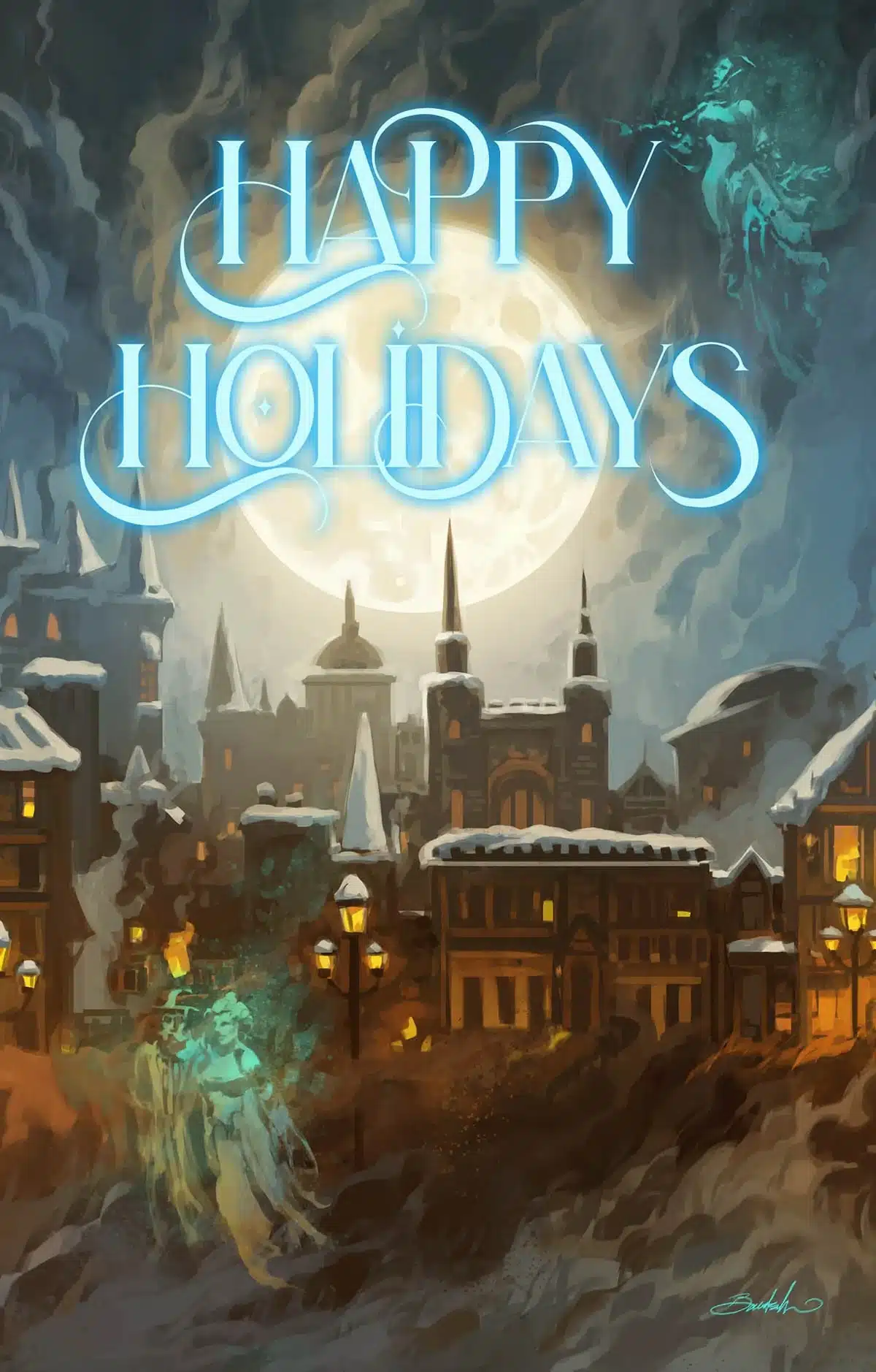 Figura Obsura: The Ghost of Jacob Marley Greeting Cards; $10; This greeting card 10-pack comes with envelopes. All 10 cards are the same design with “Happy Holidays” on the front alongside some spirits, and the face of Marley on the back!