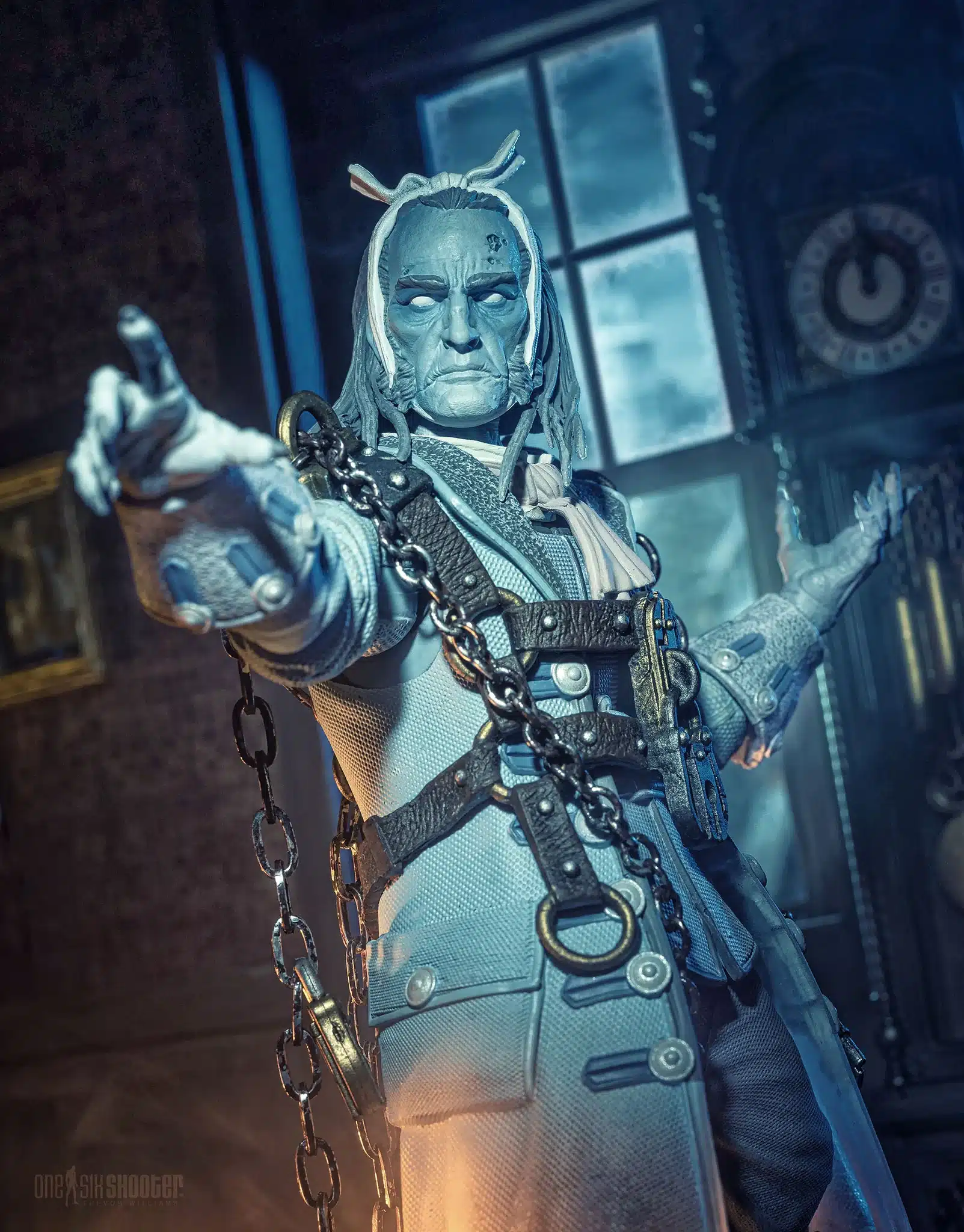 The Ghost of Jacob Marley is available for order now exclusively from StoreHorsemen.com for $60. The figure is loaded with brand new parts, including a harness full of chains that old Marley drags around, the chains which he forged in life.