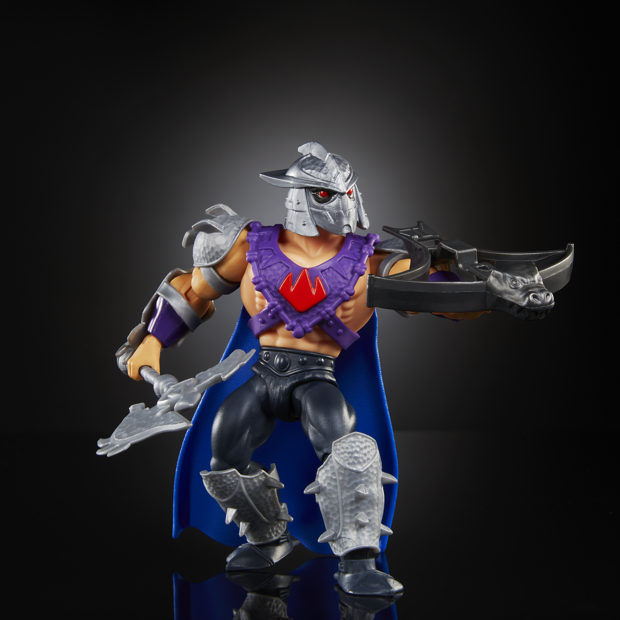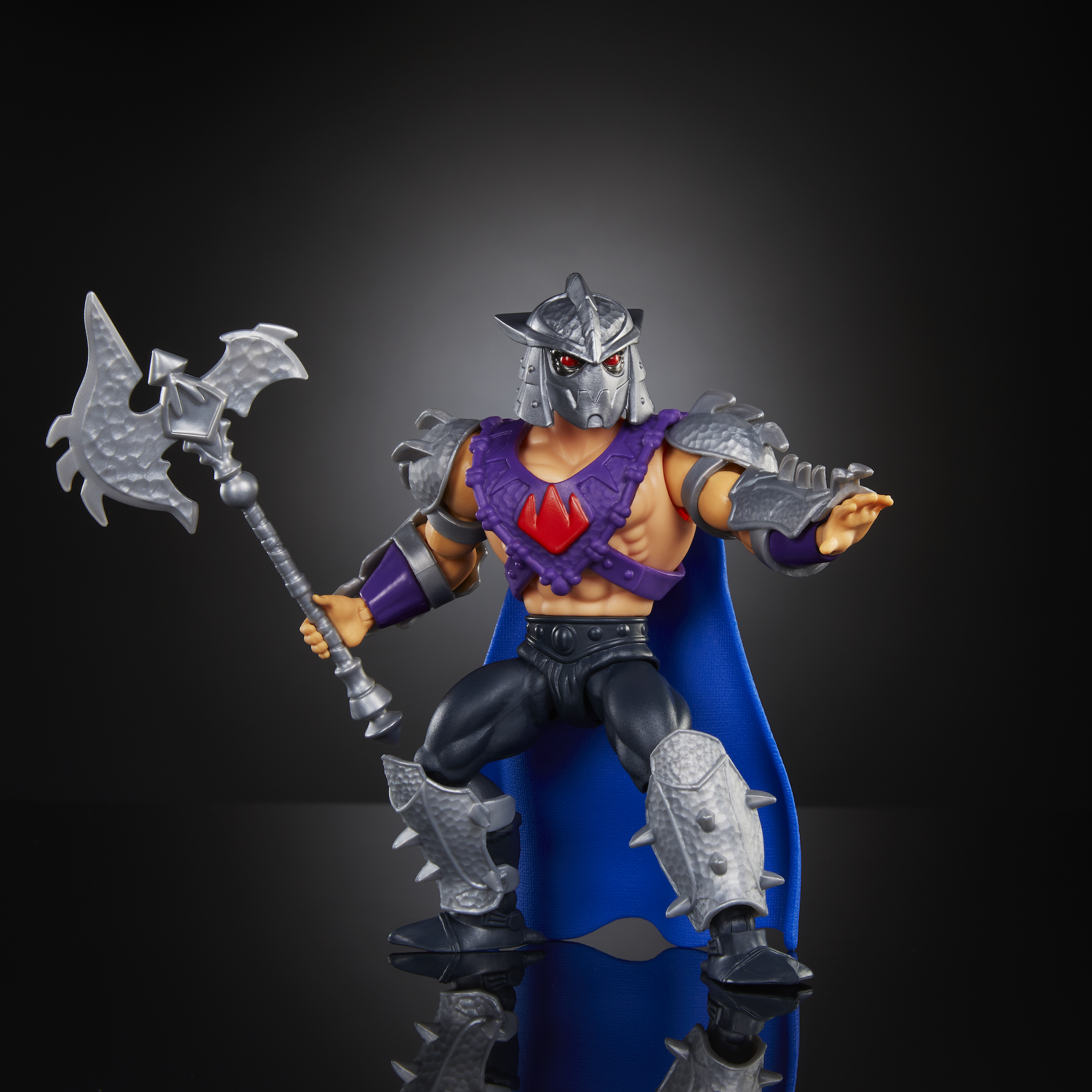 - Features the Evil Master of Ninjutsu in Eternian-style ninja armor, a fierce helmet and a dramatic cape attached to harness with the Foot Clan sigil