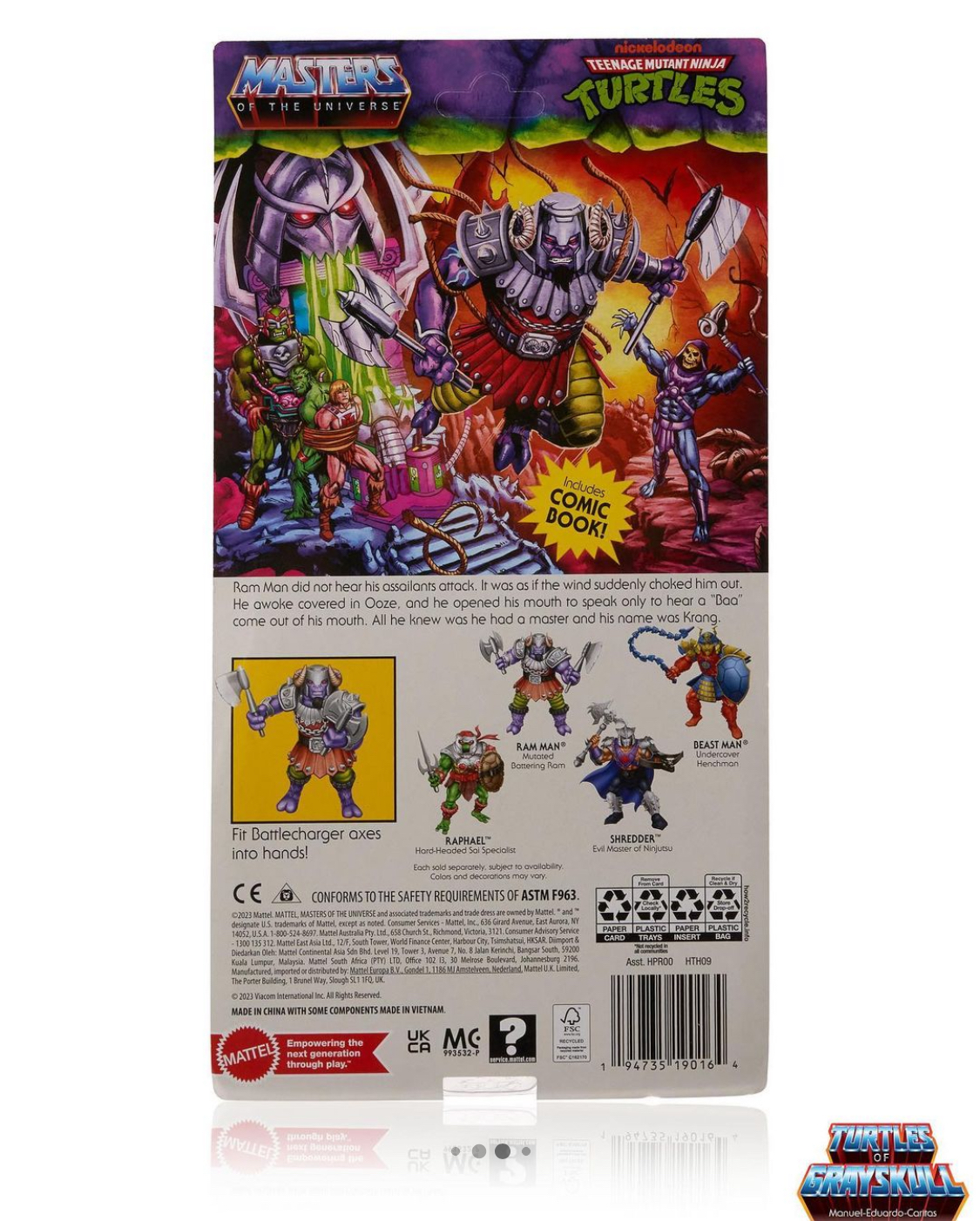 Over on Instagram, Mattel Package Designer Roy Juarez has given us a first look at the packaging and artwork that he and his team did for Ram Man from Wave 2 of Turtles of Grayskull, the Masters of the Universe x Teenage Mutant Ninja Turtles crossover.