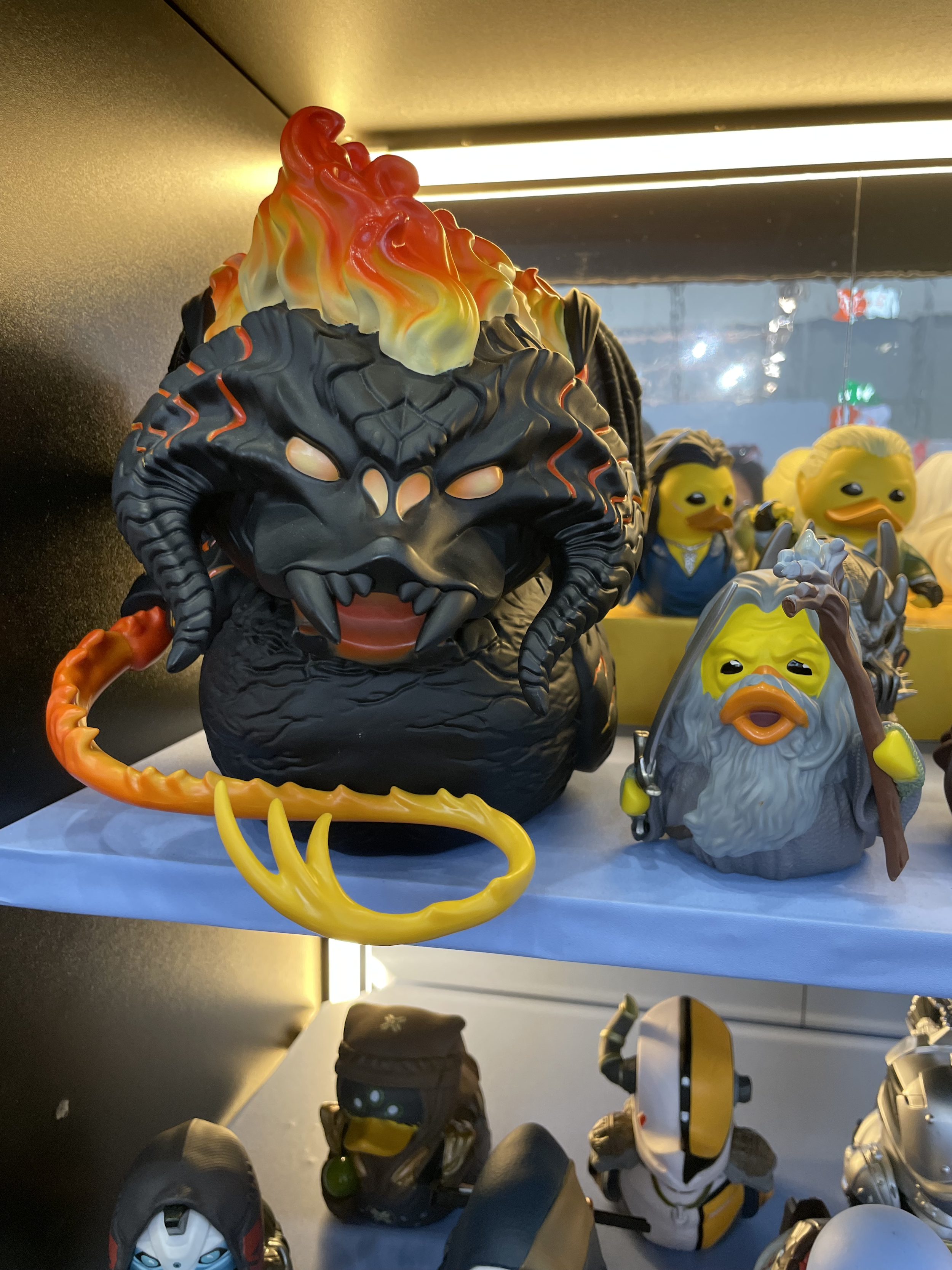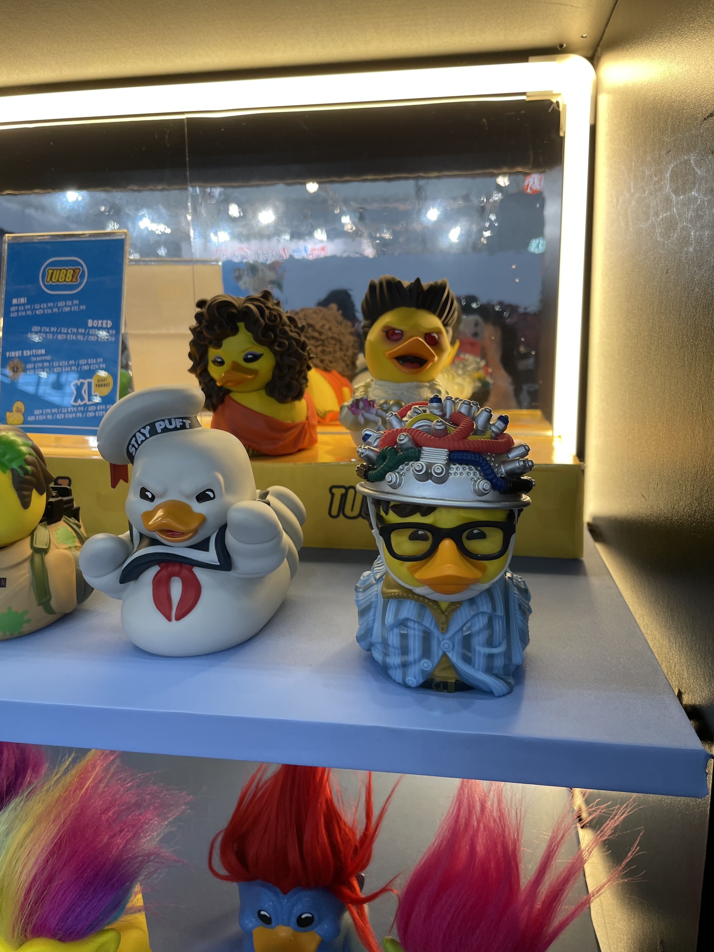 We stopped by the Numskull booth at this year’s Spielwarenmesse to check out their awesome display of Tubbz and Mini Tubbz. Some of them are even scented! For instance, the giant Stay Puft Tubbz smells like marshmallows and the Lemmy one smells like whiskey. My personal favorite one is the giant Balrog from The Lord of the Rings: The Fellowship of the Ring. I also thought the Trolls ones with their hair were fun, too. Actually, they’re all pretty awesome.