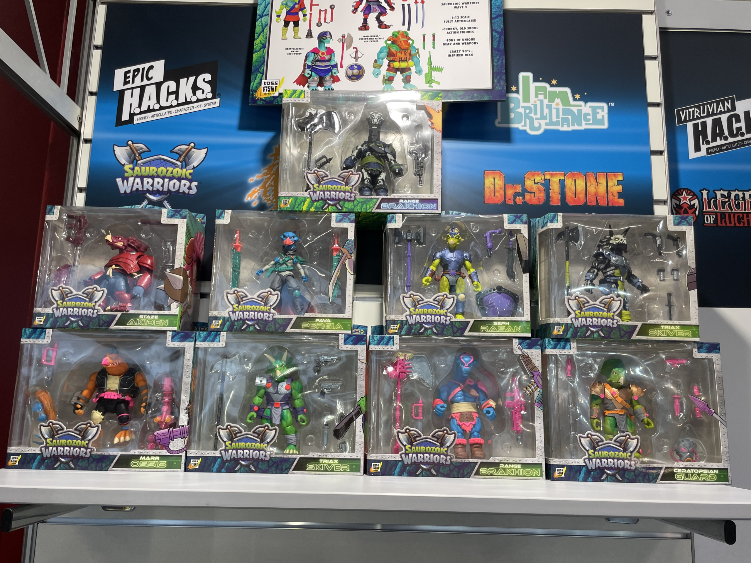 We stopped by the Boss Fight Studios booth at this year’s Spielwarenmesse to check out some of their upcoming releases and prototypes, including Saurozoic Warriors Wave 3, Legends of Luca Libre, Strawberry Shortcake Villains, and more.