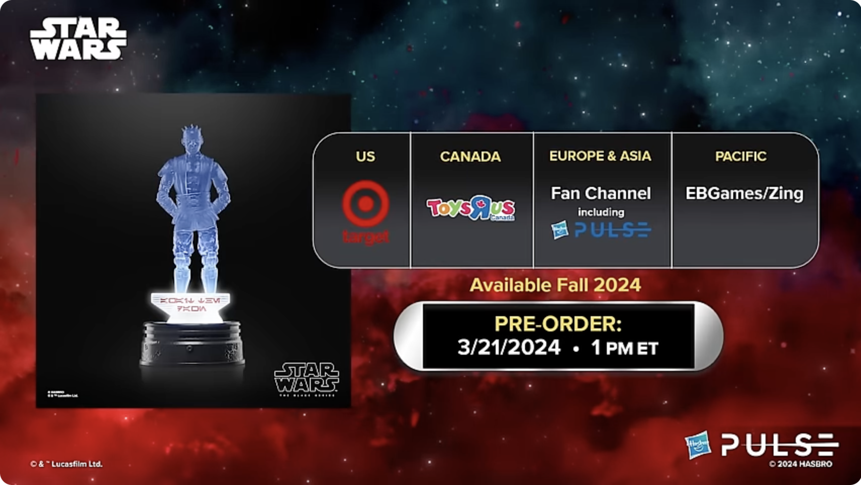 Star Wars: The Black Series Holocom Collection: Available on fan channels on March 21 at 1:0o p.m. ET; Fall 2024 release