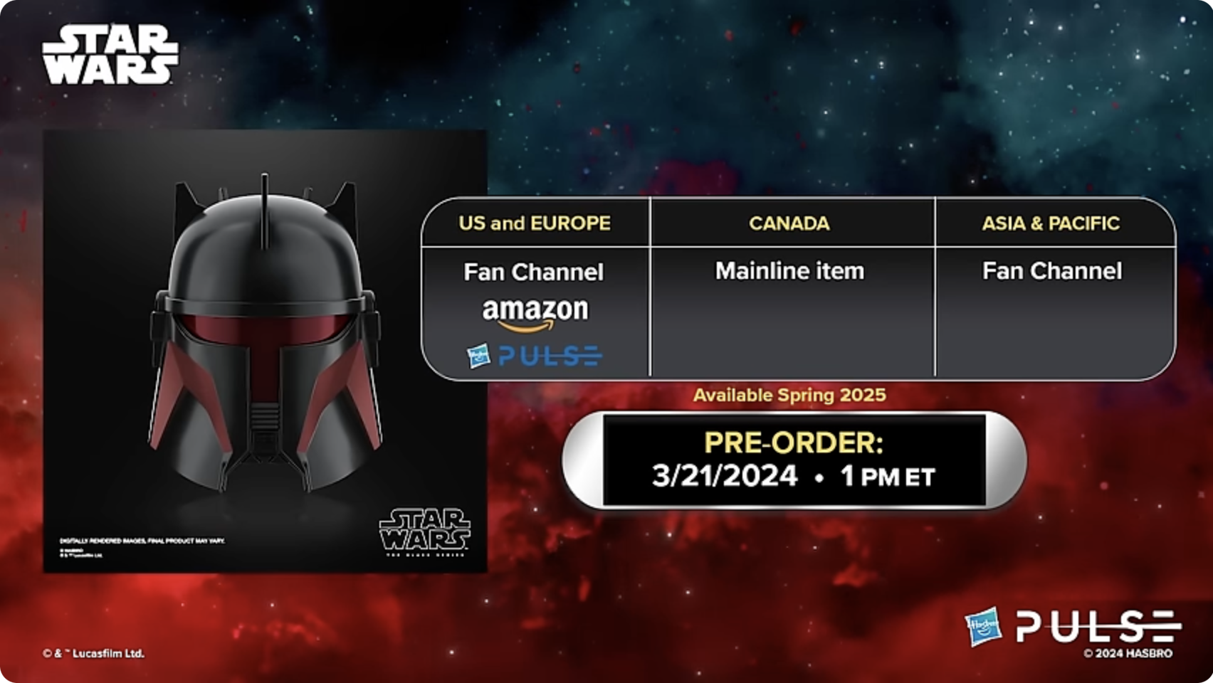 Premium Roleplay: Pre-orders begin 1:00 p.m. ET on March 21; Available Spring 2025; Fan channels, Amazon, and Hasbro Pulse in US and Europe, Mainline in Canada, and Fan Channel in Asia