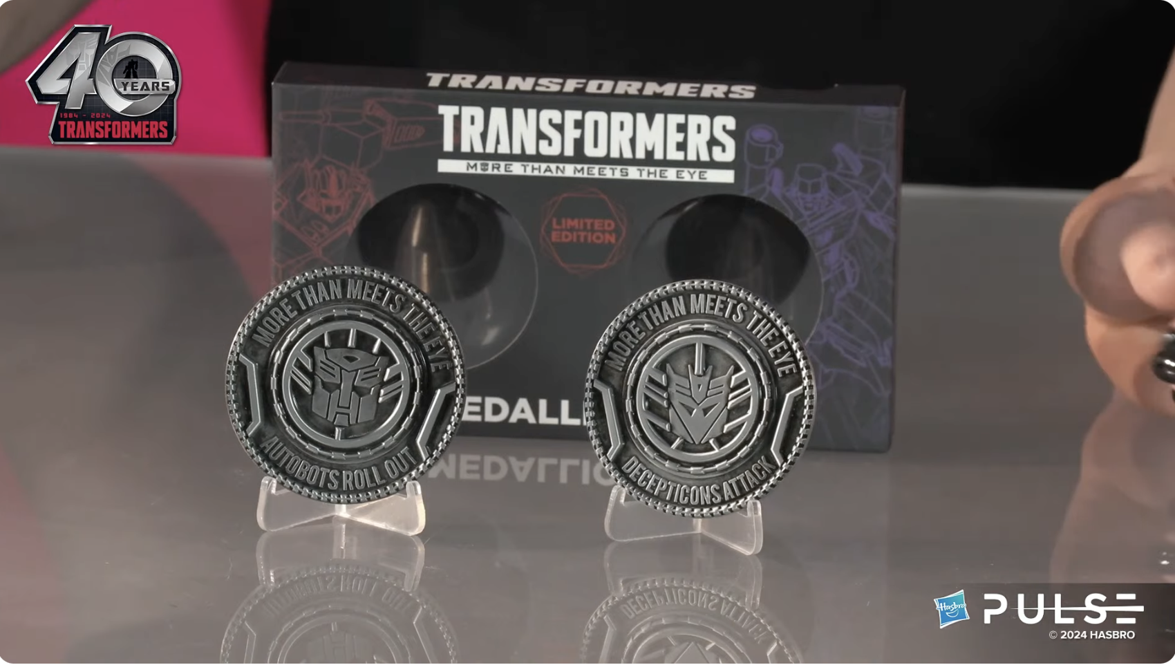 Medallion Set: Autobot or DeceptiCon; Comes with display case. Individually numbered, 5,000 worldwide. Available on Pulse.com today.
