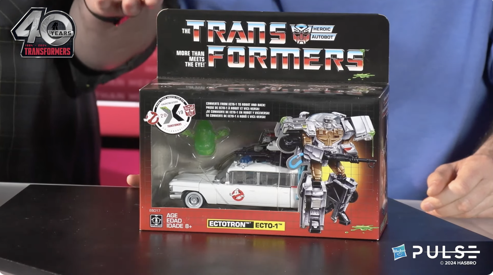 Ghostbusters EctoTron Reissue: Alt mode is the Ecto-1 and bot mode is a Ghostbuster; Comes with a Slimer. Will be available on Pulse.com, Fan Channel Retailers, and Amazon.