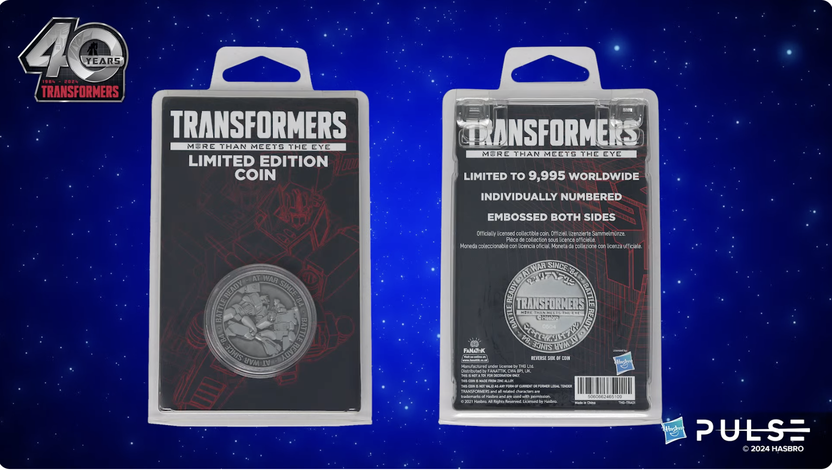 Fanatics Transformer Coins: Embossed on both sides with Optimus Prime and Megatron. Limited to 9,995 worldwide, individually numbered; 38mm in diameter and comes with protected acrylic cup.