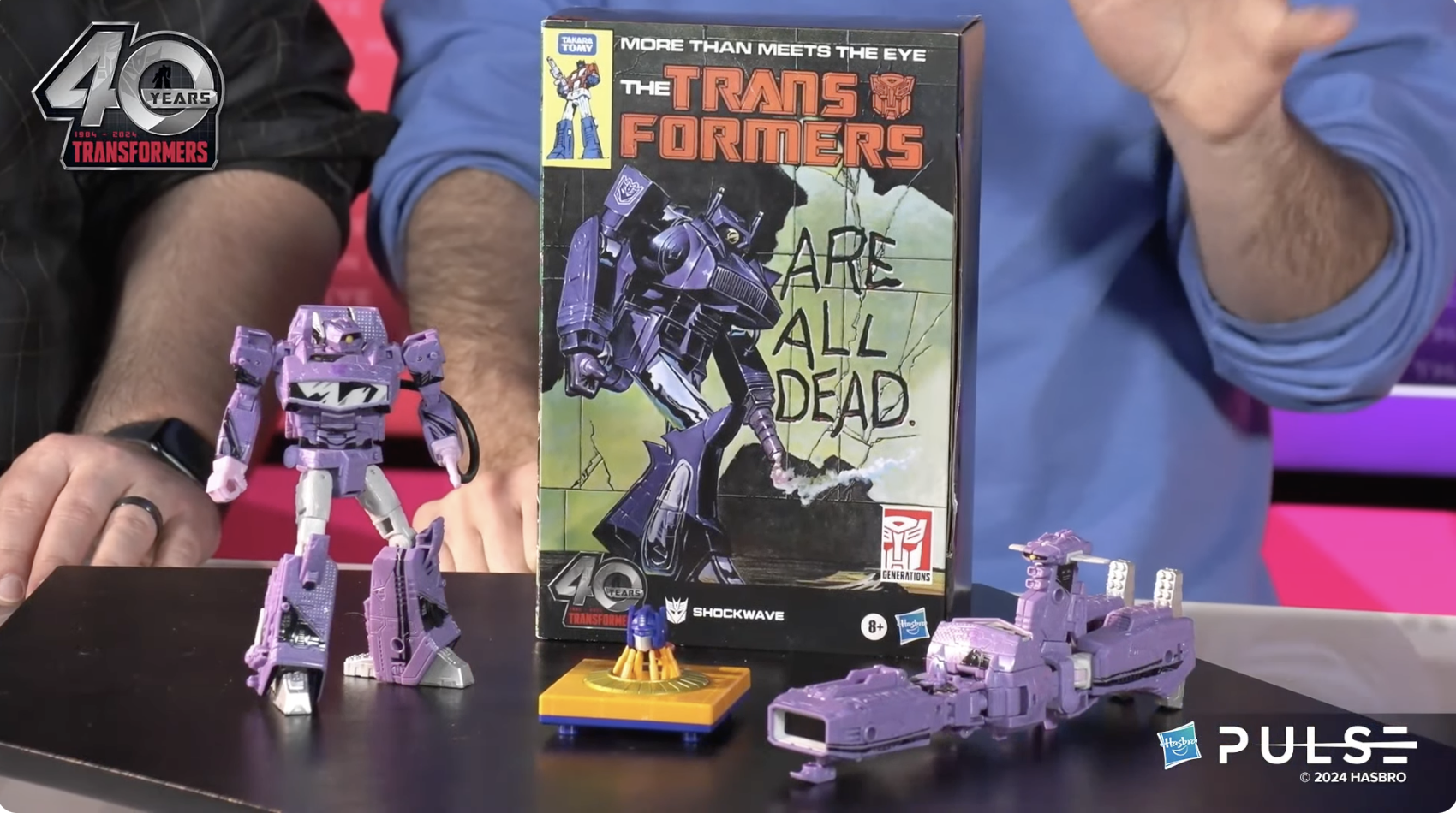Shockwave:Â Comes with Optimus Prime’s severed head. Packaging as the iconic “All Are Dead” comic cover on back and Grimlock on the side. They will be building out a scene, with Grimlock going up for pre-order sometime in April and more coming as time allows. This is a HasbroPulse.com exclusive.
