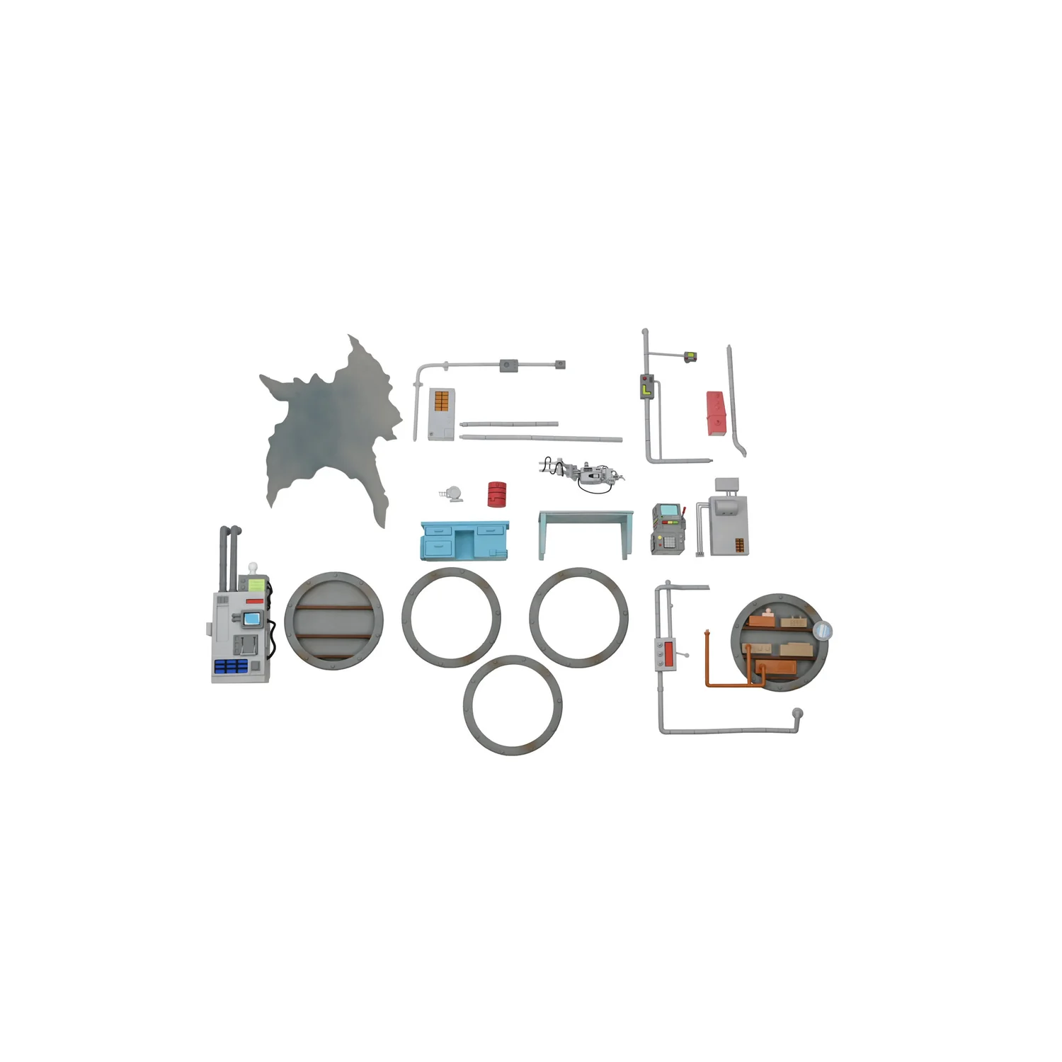 The laboratory can be displayed in both “shelf mode” and “as-seen-on-TV mode” and includes articulated gadgets, the portal generator in its compact form, sewer shelves, and a desk with opening drawers to hold Donatello’s inventions!