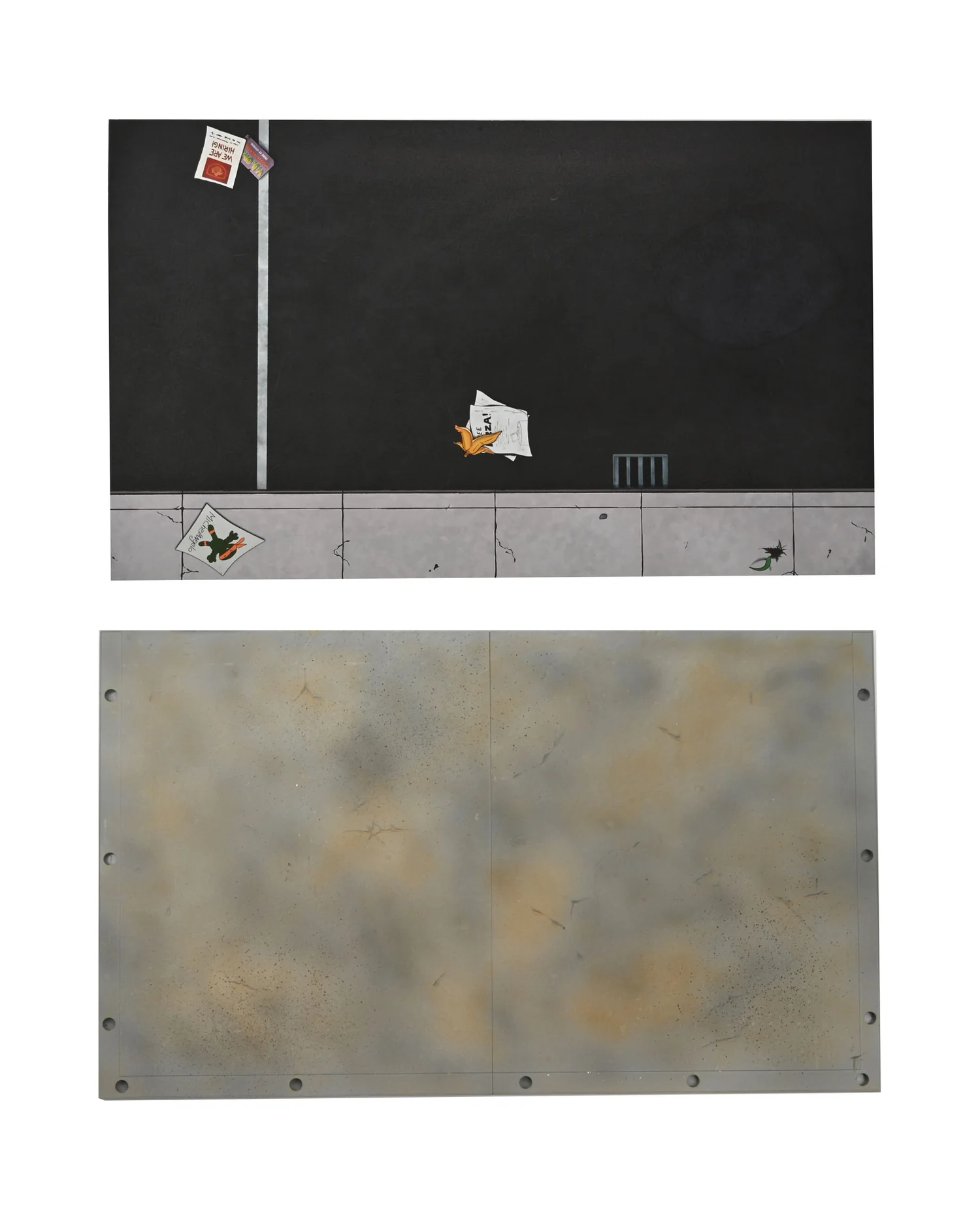 This diorama fits perfectly next to the TMNT Sewer Lair Living Room (sold separately) and has a sturdy street topper that can hold NECA’s Street Scene Diorama and figures (sold separately). The box features trendy artwork and a built-in handle for collectors on the go! New toy smell also included!