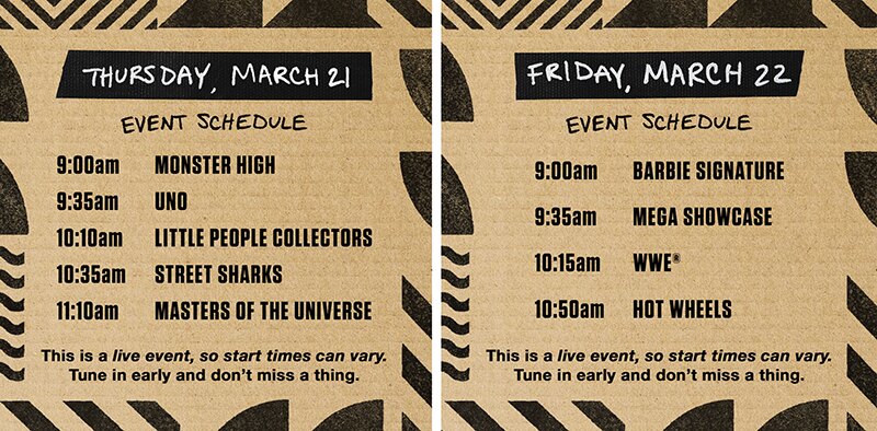 Mattel Creations is having a “REVEALED” event on March 21 and 22 that starts on 12:00 p.m. ET. each day. It will be a live-streamed event that features new items from different areas of Mattel’s lineup. These items will be available for pre-order at the start of each topic. (So, Little People will go up for pre-order at 1:10 p.m. ET on March 21, Hot Wheels at 1:50 p.m. ET on March 22, etc.).