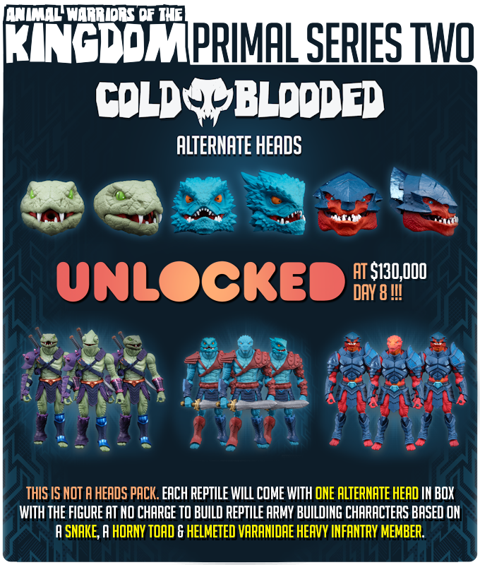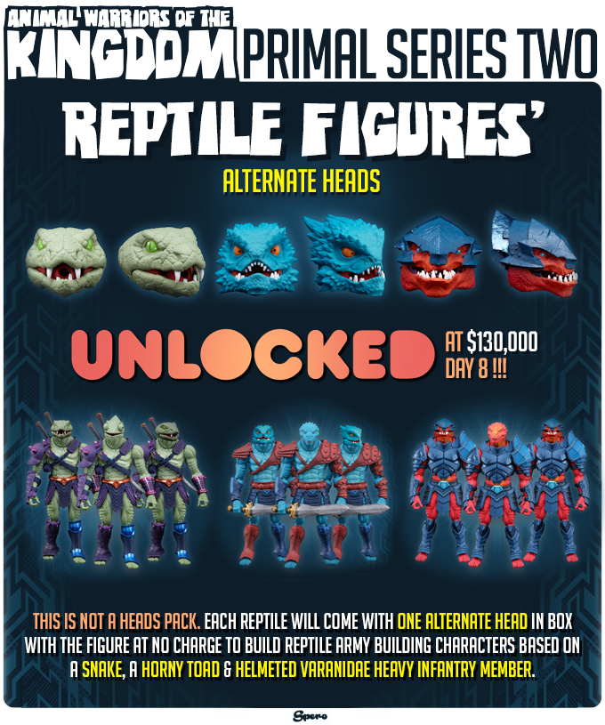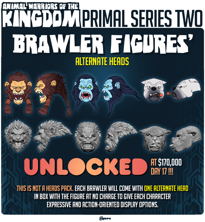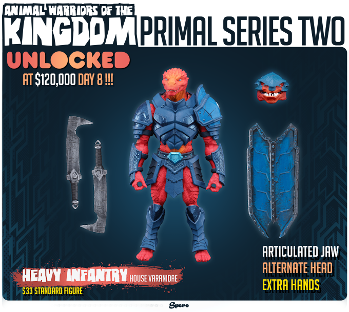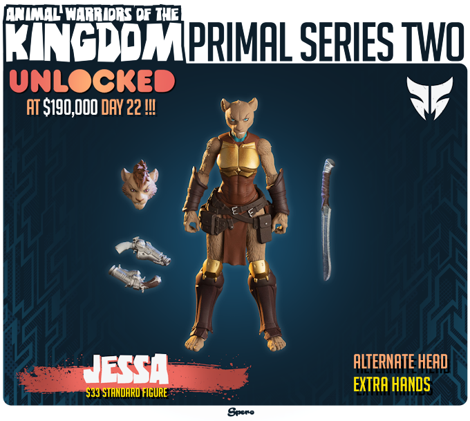 The next seven days will be dramatic. Even though the campaign already hit its initial goal, the real question remains: How many of the seven remaining figures will be unlocked by campaign’s end? Will Spero be able to unlock one figure per day? It’ll ultimately be up to the Animal Warriors of the Kingdom fans, both new and old, to determine just how fast this imaginative toy line’s cast of characters will grow.