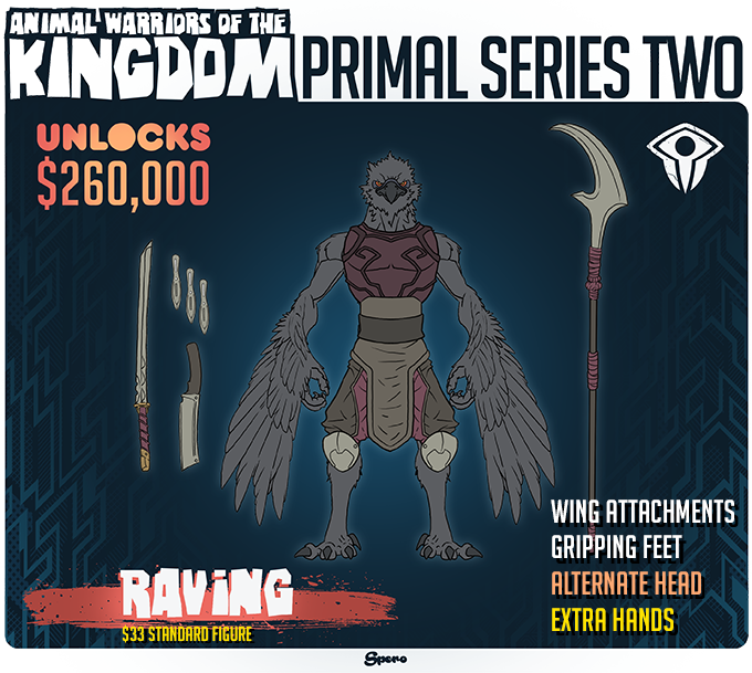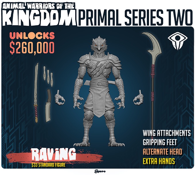 Spero Toys’ Animal Warriors of the Kingdom (AWOK) Primal Series 2 Kickstarter campaign hit the floor running on March 6, 2024, flying past its original $99,000 fundraising goal in just five days. But that was just the beginning, as the campaign kept revealing new UNLOCK items, ultimately offering seven new anthropomorphic animal body types instead of the campaign’s original four, including special bundled rewards packages that could save collectors up to $424 should the campaign end up raising more than $470,000. Spero Toys has been hard at work promoting the Kickstarter campaign across all the toy-related information outlets that would have them, but with just seven days to go, they’re hoping to raise enough funds to add three birds, an ox, and three huge pachyderm figures to the just one-year-old indie toy line.