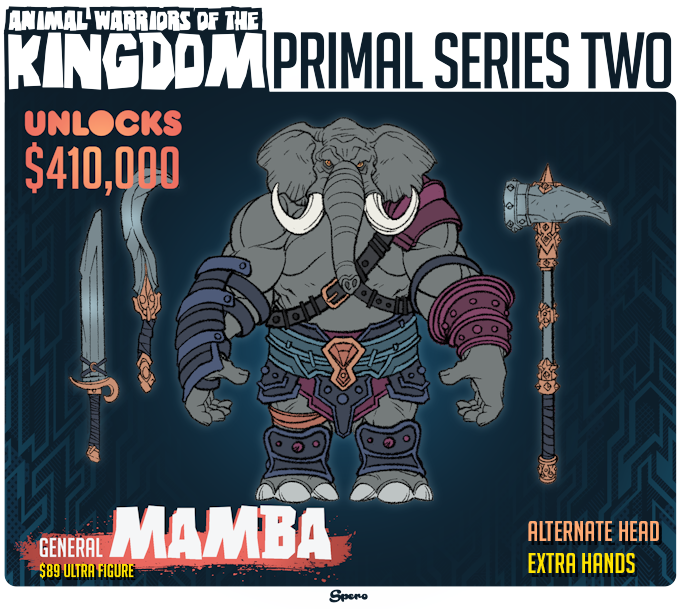 “We’re happy with what we’ve accomplished so far, but we’re looking to make the big push for $470,000. We know there’s a usual spike in support towards the end of these crowdfunding campaigns, but we’re gonna do everything we can to make sure this spike is appropriately elephant-, rhino-, and hippo-sized,” proclaims Bienvenu. “When I envisioned the AWOK world of characters as a comic book 11 years ago, it was filled with all sorts of animal species, each spread across different houses, armies, and factions. This Kickstarter is us taking our shot to build this world on toy collectors’ shelves in just about two years of AWOK toy releases.”