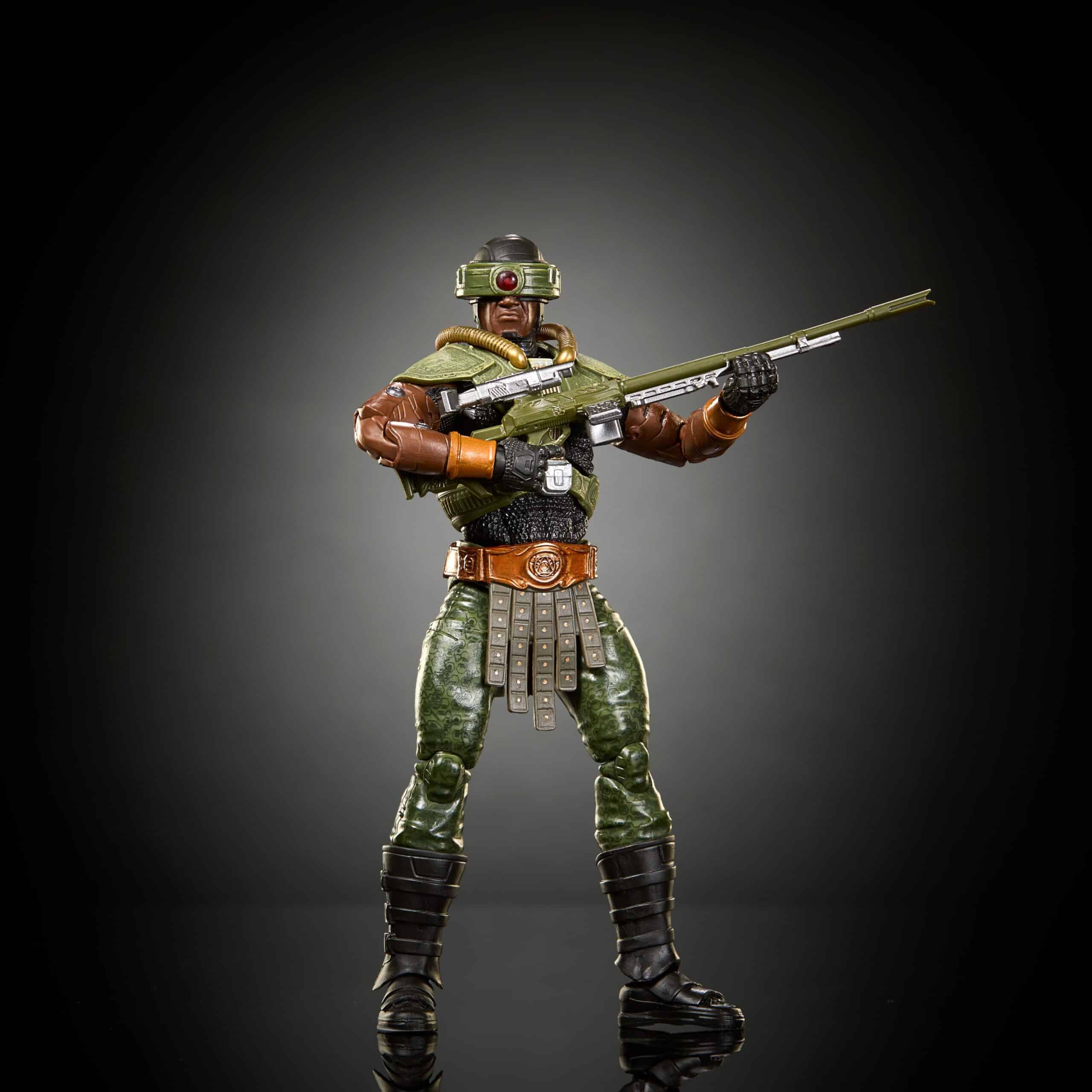 - With 30 points of articulation for dynamic posing, the cybernetic-eyed villain comes equipped with a long-barreled blaster accessory and an extra set of hands.